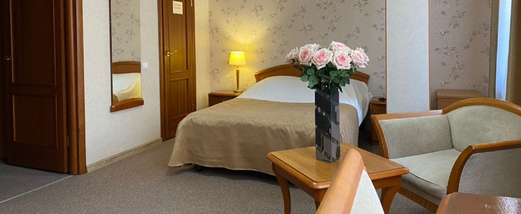В номере: вешалка, зеркало, кровать двуспальная, прикроватные тумбочки, стол, стулья, шкаф, индивидуальная система обогрева, кондиционер, микроволновая печь, сейф, телевизор, телефон, холодильник, чайный набор посуды, электрочайник