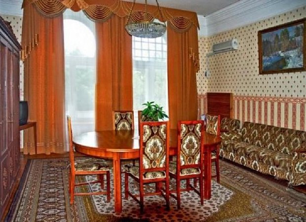 В номере: большая двуспальная кровать, одна односпальная кровать, диван-кровать, телевизор, кабельное ТВ, холодильник, фен, кондиционер, туалетный столик, тумбы, шкаф для одежды, сушилка для белья, набор посуды, чайник, чайный набор, Wi-Fi в общественных зонах